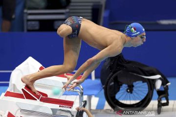 Atlet renang Italia Alberto Amodeo berlatih saat sesi latihan Paralimpiade Tokyo 2020di Tokyo Aquatics Centre, Tokyo, Jepang, Senin (23/8/2021). ANTARA FOTO/REUTERS/Molly Darlington/rwa.