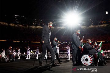 Atlet Iran mengikuti parade saat upacara pembukaan Paralimpiade Tokyo 2020 di Olympic Stadium, Tokyo, Jepang, Selasa (24/8/2021). ANTARA FOTO/REUTERS/Lisi Niesner/rwa.