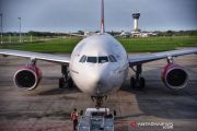 Pesawat Airbus-A330 milik maskapai Batik Air bersiap melanjutkan penerbangannya setelah mendarat darurat di Bandara Kualanamu, Deli Serdang, Sumatera Utara, Minggu (29/8/2021). Pesawat dengan registrasi PK-LEL dan rute penerbangan Aceh-Jakarta yang membawa 271 orang penumpang, sembilan awak kabin, pilot dan co pilot itu mendarat darurat di Bandara Kualanamu pada hari Minggu (29/8/2021) pukul 11.45 WIB. ANTARA FOTO/Fransisco Carolio/aww.