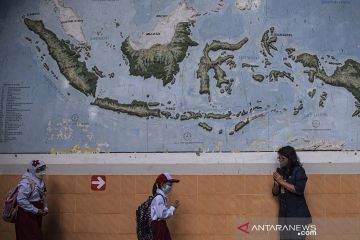 Siswa berjalan pulang seusai mengikuti pembelajaran tatap muka di SDN Pondok Labu 14 Pagi, Jakarta Selatan, Senin (30/8/2021). Sebanyak 610 sekolah di Ibu Kota menggelar pembelajaran tatap muka secara terbatas dengan protokol kesehatan ketat. ANTARA FOTO/Sigid Kurniawan/aww.