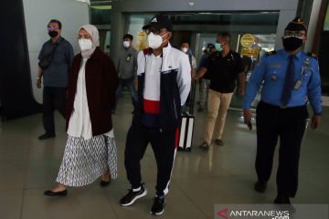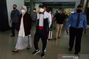 Bupati Probolinggo Puput Tantriana Sari (kanan) dan suaminya yang juga anggota DPR dari Partai NasDem Hasan Aminudin (kiri) tiba di Terminal 3, Bandara Soekarno Hatta, Tangerang, Banten, Senin (30/8/2021). Pasangan suami istri tersebut terjaring Operasi Tangkap Tangan (OTT) Komisi Pemberantasan Korupsi (KPK) terkait kasus dugaan jual beli jabatan di Pemerintah Daerah Probolinggo. ANTARA FOTO/Muhammad Iqbal/rwa.