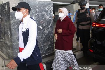 Bupati Probolinggo Puput Tantriana Sari (tengah) dan suaminya yang juga anggota DPR dari Partai NasDem Hasan Aminudin (kiri) berjalan keluar dari Terminal 3 setibanya di Bandara Soekarno Hatta, Tangerang, Banten, Senin (30/8/2021). Pasangan suami istri tersebut terjaring Operasi Tangkap Tangan (OTT) Komisi Pemberantasan Korupsi (KPK) terkait kasus dugaan jual beli jabatan di Pemerintah Daerah Probolinggo. ANTARA FOTO/Muhammad Iqbal/rwa.