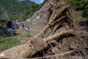 Sejumlah pegendara tertahan di ruas Jalan Trans Palu-Palolo yang tertimbun material longsoran di Desa Sigimpu, Sigi, Sulawesi Tengah, Sabtu (4/9/2021). Jalan yang menghubungkan Kota Palu dan sejumlah kecamatan di Kabupaten Sigi itu tertimbun material longsoran di tujuh titik akibat hujan deras dengan intensitas tinggi pada Jumat (3/9) petang dan sempat memutus total jalan itu selama lebih dari 13 jam. ANTARA FOTO/Basri Marzuki/foc.