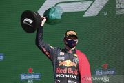 Pebalap Red Bull Max Verstappen berselebrasi di podium usai memenangi balapan FI GP Belanda di Sirkuit Zandvoort, Zandvoort, Belanda, Minggu (5/9/2021). ANTARA FOTO/REUTERS/Benoit Tessier/rwa.