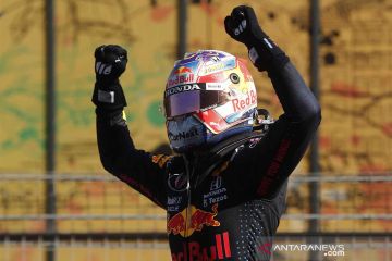 Pebalap Red Bull Max Verstappen berselebrasi usai memenangi balapan FI GP Belanda di Sirkuit Zandvoort, Zandvoort, Belanda, Minggu (5/9/2021). ANTARA FOTO/REUTERS/Benoit Tessier/rwa.