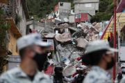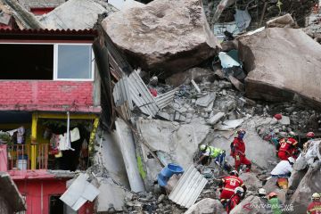 Tim penyelamat bekerja mencari korban setelah terjadi tanah longsor di Cerro del Chiquihuite yang mengubur rumah-rumah di daerah itu, di kotamadya Tlalnepantla de Baz, di pinggiran Mexico City, Meksiko, Jumat (10/9/2021). ANTARA FOTO/Reuters-Edgard Garrido/hp.