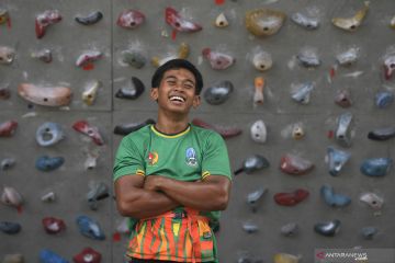 Atlet panjat tebing Jawa Timur Rahmad Adi Mulyono berpose saat mengikuti latihan di Surabaya, Jawa Timur, Senin (13/9/2021). Panjat tebing merupakan salah satu cabang olahraga unggulan Jawa Timur dan Adi menjadi salah satu atlet panjat tebing unggulan yang diharapkan mampu meraih medali emas pada PON Papua. ANTARA FOTO/Zabur Karuru/wsj.