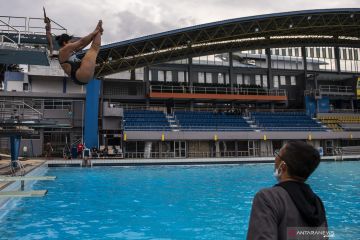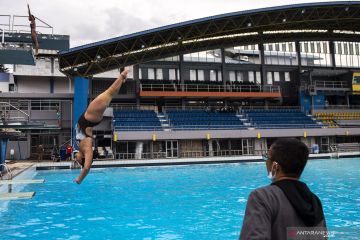 Atlet loncat indah putri Jawa Barat Sari Ambarwati melakukan latihan rutin jelang pelaksanaan PON Papua di kolam renang UPI, Setiabudi, Bandung, Jawa Barat, Rabu (15/9/2021). Tim loncat indah Jawa Barat menurunkan tiga atletnya untuk bertanding di PON Papua dan menargetkan satu medali emas dan satu perak. ANTARA FOTO/M Agung Rajasa/hp.