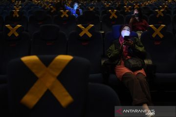 Pengunjung duduk di kursi penonton bioskop CGV, Grand Indonesia, Jakarta, Kamis (16/9/2021). Sejumlah bioskop di Jakarta mulai beroperasi kembali di masa PPKM level 3 dengan penerapan protokol kesehatan yang ketat. ANTARA FOTO/Akbar Nugroho Gumay/aww.