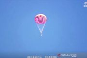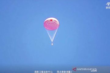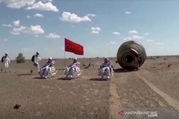 Tangkapan layar menunjukkan astronot China bersiap mendarat setelah misi 90 hari mereka ke stasiun luar angkasa, di Daerah Otonomi Mongolia Dalam China, (17/9/2021). ANTARA FOTO/Reuters TV/China Central Television (CCTV) via REUTERS/aww.