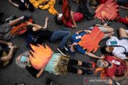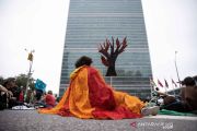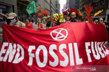 Aksi protes perubahan iklim 'perlawanan tanpa kekerasan' oleh Extinction Rebellion di wilayah Manhattan di New York, Amerika Serikat, Jumat (17/9/2021). ANTARA FOTO/REUTERS/Caitlin Ochs/rwa.