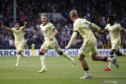 Pesepak bola Arsenal Martin Odegaard (kedua kiri) melakukan selebrasi setalh berhasil mencetak gol ke gawan Burnley dalam laga pekan kelima Liga Inggris, di Stadion Turf Moor, Burnley, Inggris, Sabtu (18/9/2021). HIngga babak pertama usai Arsenal unggul 1-0 atas lawannya. ANTARA FOTO/Reuters-Craig Brough/hp.