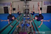 Atlet Senam Ritmik Sumatera Utara Tata Miranda Putri Tampubolon berlatih di Gedung Jepta Hutabarat, Medan, Sumatera Utara, Selasa (21/9/2021). Tim Senam Ritmik Sumatera Utara menurunkan dua atletnya untuk bertanding di PON Papua pada bulan Oktober mendatang dengan target medali emas. ANTARA FOTO/Fransisco Carolio/aww.