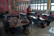 Sejumlah murid mengikuti kegiatan belajar mengajar di Sekolah Dasar Negeri 24, Banda Aceh, Aceh, Jumat, (24/9/2021). Pemerintah kembali mengizinkan sejumlah sekolah dari berbagai tingkatan pendidikan menggelar pembelajaran tatap muka terbatas dengan sistem pembagian waktu dan menerapkan protokol kesehatan secara ketat setelah Aceh keluar dari zona merah COVID-19. ANTARA FOTO/Ampelsa/foc.