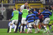 Pesepak bola Atalanta Juan Musso (kiri) berteriak gembira setelah pertandingan usai melawan Inter Milan dalam laga pekan keenam Liga Italia, di Stadion San Siro, Milan, Italia, Sabtu (25/9/2021). Atalanta berhasil menahan imbang Inter Milan 2-2. ANTARA FOTO/Reuters-Alberto Lingria/hp.