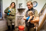 Petugas kebun binatang menggendong anak singa yang baru lahir di Kebun Binatang Kopenhagen, di Kopenhagen, Denmark, Senin (27/9/2021). ANTARA FOTO/Reuters- Ritzau Scanpix-Ida Marie Odgaard/hp.