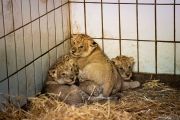 Anak-anak singa yang baru lahir terlihat di dalam kandang di Kebun Binatang Kopenhagen, di Kopenhagen, Denmark, Senin (27/9/2021). ANTARA FOTO/Reuters- Ritzau Scanpix-Ida Marie Odgaard/hp.