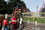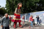Little Amal, boneka setinggi 3,5 meter yang menggambarkan pengungsi Suriah tanpa pendamping terlihat di Jenewa, Swiss, Selasa (28/9/2021). ANTARA FOTO/REUTERS/Denis Balibouse/rwa.