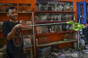 Pecinta hewan reptil menunjukan seekor ular boiga multomaculata di Panyikiran, Kota Tasikmalaya, Jawa Barat, Rabu (29/9/2021). Pegiat alam terbuka Hira, membudidayakan ular berbisa untuk dilepasliarkan ke habitatnya agar menjaga keseimbangan ekosistem alam dan sebagai sarana edukasi kepada masyarakat. ANTARA FOTO/Adeng Bustomi/aww.