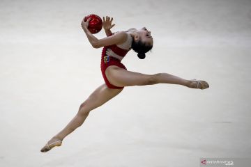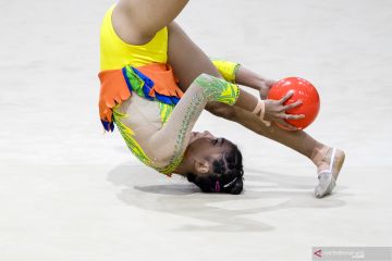Pesenam Sumatera Utara Thasya Selivia Valentine beraksi dalam nomor bola senam ritmik final perorangan serba bisa PON Papua di Istora Papua Bangkit, Kampung Harapan, Kabupaten Jayapura, Papua, Kamis (7/10/2021). ANTARA FOTO/M Risyal Hidayat/hp.