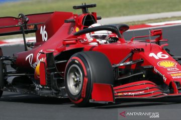 Pembalap Ferrari Charles Leclerc memacu kendaraannya saat sesi latihan Formula One F1 Grand Prix Turki, di Sirkuit Istanbul Park, Istanbul, Turki, Jumat (8/10/2021). ANTARA FOTO/Reuters-Murad Sezer/hp.