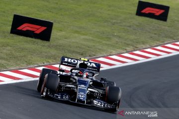 Pembalap AlphaTauri Pierre Gasly memacu kendaraannya saat sesi latihan Formula One F1 Grand Prix Turki, di Sirkuit Istanbul Park, Istanbul, Turki, Jumat (8/10/2021). ANTARA FOTO/Reuters-Murad Sezer/hp.