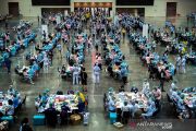 Siswa sekolah menengah antara usia 12-17 menunggu observasi kemungkinan gejala setelah menerima dosis pertama vaksin Pfizer-BioNTech COVID-19 di aula konvensi, pinggiran Bangkok , Thailand, Jumat (15/10/2021). Thailand membuka kembali sekolah pada bulan November mendatang. ANTARA FOTO/ REUTERS/Athit Perawongmetha/rwa.