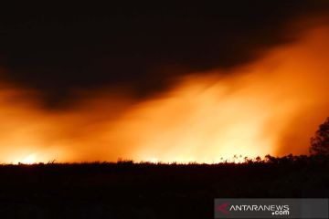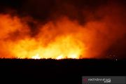 Lahan tebu terbakar di Kota Madiun, Jawa Timur, Jumat (15/10/2021) malam. Menurut warga di sekitar lokasi, pada 13 Oktober lalu juga terjadi kebakaran di lahan milik Pemkot Madiun tersebut dan belum diketahui penyebabnya. ANTARA FOTO/Siswowidodo/aww.