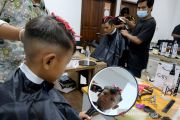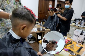 Peserta mengikuti pelatihan barbershop atau potong rambut dalam Denpasar Youth Festival di Gedung Dharmanegara Alaya, Denpasar, Bali, Minggu (17/10/2021). Kegiatan yang diikuti 20 peserta tersebut untuk memberikan keterampilan kepada para pemuda sehingga bisa menjadi pekerjaan atau membuka usaha yang bernilai ekonomi pada masa pandemi COVID-19. ANTARA FOTO/Nyoman Hendra Wibowo/pras.