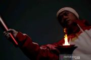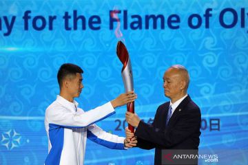 Sekretaris Partai Komunis Beijing dan Presiden Komite Penyelenggara Beijing 2022 Cai Qi menerima obor dengan nyala api Olimpiade pada upacara penyambutan nyala api untuk Olimpiade Musim Dingin Beijing 2022 di Beijing, China, Rabu (20/10/2021). ANTARA FOTO/REUTERS/Tingshu Wang/rwa.