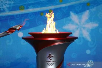 Nyala api Olimpiade menyala dalam kaldron pada upacara penyambutan nyala api Olimpiade Musim Dingin Beijing 2022 di Beijing, China, Rabu (20/10/2021). Beijing menjadi tuan rumah Olimpiade Musim Dingin 2022 yang berlangsung pada 4 hingga 20 Februari 2022. ANTARA FOTO/REUTERS/Tingshu Wang/rwa.
