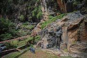 Wisatawan menikmati pemandangan air terjun di kawasan wisata alam Curug Batu Templek, Cimenyan, Kabupaten Bandung, Jawa Barat, Rabu (20/10/2021). Pengelola wisata Curug Batu Templek menargetkan sebanyak 500 pengunjung pada libur Maulid Nabi 2021 atau dua kali lipat dibandingkan hari biasa yang hanya 250 kunjungan ke kawasan wisata tersebut. ANTARA FOTO/Raisan Al Farisi/rwa.