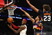 Pebasket Denver Nuggets Will Barton menguasai bola dengan dikawal pebasket Phoenix Suns saat laga NBA di Phoenix, Arizona, AS (20/10/2021). ANTARA FOTO/Mark J. Rebilas-USA TODAY Sports via Reuters/aww.