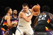 Pebasket Denver Nuggets Nikola Jokic (15) menguasai bola dengan dikawal pebasket Phoenix Suns saat laga NBA di Phoenix, Arizona, AS (20/10/2021). ANTARA FOTO/Mark J. Rebilas-USA TODAY Sports via Reuters/aww.