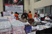 Direktur Tipideksus Polri Brigjen Pol Helmy Santika (ketiga kanan) didampingi Karo Penmas Divisi Humas Polri Brigjen Pol Rusdi Hartono (kiri) menunjukkan barang bukti kasus pinjaman online (pinjol) ilegal di Bareskrim Mabes Polri, Jakarta, Senin (25/10/2021). Direktorat Tindak Pidana Ekonomi Khusus (Dittipideksus) Bareskrim Polri mengamankan Rp20,4 miliar dari rekening bank atas nama Koperasi Simpan Pinjam (KSP) Solusi Andalan Bersama dan menangkap pelaku berkewarganegaraan asing yang berperan sebagai pemodal dan fasilitator, serta mengamankan tiga tersangka berinisial JS, DN dan SR yang memiliki peran berbeda di KSP itu. ANTARA FOTO/Reno Esnir/foc.