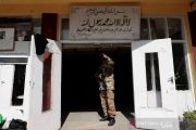 Seorang pejuang Taliban berjaga di depan pintu masuk sebuah sekolah di Kabul, Afghanistan, 25 Oktober 2021. Gerakan Islam garis keras Taliban, yang merebut kekuasaan awal tahun ini setelah menggulingkan pemerintah yang didukung Barat, mengizinkan anak perempuan tingkat sekolah dasar kembali ke kelas, tetapi tidak membiarkan anak perempuan lainnya menghadiri sekolah menengah dan universitas. ANTARA FOTO/REUTERS/Zohra Bensemra/wsj.