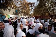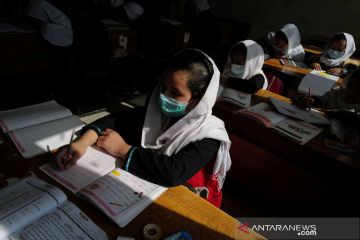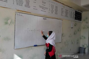 Hadia (10) seorang siswi kelas 4 sekolah dasar menghadiri sekolahnya di Kabul, Afghanistan, 26 Oktober 2021. Gerakan Islam garis keras Taliban, yang merebut kekuasaan awal tahun ini setelah menggulingkan pemerintah yang didukung Barat, mengizinkan anak perempuan tingkat sekolah dasar kembali ke kelas, tetapi tidak membiarkan anak perempuan lainnya menghadiri sekolah menengah dan universitas. ANTARA FOTO/REUTERS/Zohra Bensemra/wsj.