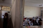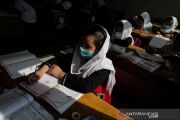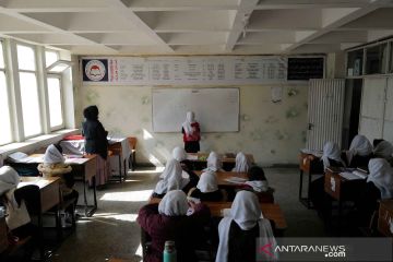 Sejumlah siswi sekolah dasar kelas 4 menghadiri kelas di Kabul, Afghanistan, 25 Oktober 2021. Gerakan Islam garis keras Taliban, yang merebut kekuasaan awal tahun ini setelah menggulingkan pemerintah yang didukung Barat, mengizinkan anak perempuan tingkat sekolah dasar kembali ke kelas, tetapi tidak membiarkan anak perempuan lainnya menghadiri sekolah menengah dan universitas. ANTARA FOTO/REUTERS/Zohra Bensemra/wsj.