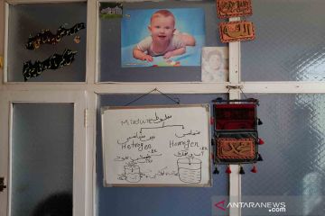 Sebuah papan tulis yang digunakan Sahar (17), seorang siswi kelas 11 sekolah menengah atas terlihat di rumahnya di Kabul, Afghanistan, 19 Oktober 2021. Gerakan Islam garis keras Taliban, yang merebut kekuasaan awal tahun ini setelah menggulingkan pemerintah yang didukung Barat, mengizinkan anak perempuan tingkat sekolah dasar kembali ke kelas, tetapi tidak membiarkan anak perempuan lainnya menghadiri sekolah menengah dan universitas. ANTARA FOTO/REUTERS/Zohra Bensemra/wsj.