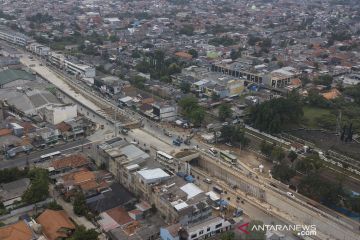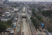 Foto udara pembangunan underpass Bulak Kapal, Bekasi, Jawa Barat, Rabu (3/11/2021). Kementerian Pekerjaan Umum dan Perumahan Rakyat (PUPR) menargetkan pembangunan Underpass Bulak Kapal selesai akhir tahun 2021 untuk mengurai kemacetan di wilayah tersebut dan saat ini pembangunan telah mencapai 90,43 persen. ANTARA FOTO/ Fakhri Hermansyah/aww.
