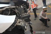 Polisi melakukan olah TKP kecelakaan mobil Pajero nopol B 1264 BJU yang ditumpangi artis Vanessa Angel dan keluarganya usai mengalami kecelakaan di ruas tol Jombang-Mojokerto KM 672 arah Surabaya di Bandarkedungmulyo, Kabupaten Jombang, Jawa Timur, Kamis (4/11/2021). Kecelakaan tersebut menewaskan Vanessa Angel dan suaminya Febri Ardiansyah, sementara tiga orang penumpang lainnya mengalami luka-luka. ANTARA FOTO/Syaiful Arif/wsj.