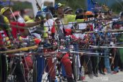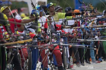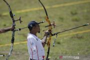 Pemanah DKI Jakarta Kholidin bersiap membidik sasaran pada kualifikasi panahan recurve dan recurve elite putra - putri Peparnas Papua di Lapangan Panahan, Kampung Harapan, Kabupaten Jayapura, Papua, Senin (8/11/2021). ANTARA FOTO/Wahyu Putro A/pras.