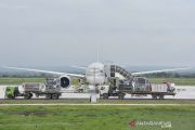 Pesawat kargo Boeing 777 Freighter Qatar Airways yang membawa logistik World Superbike (WSBK) parkir untuk bongkar muatan di Bandara Internasional Lombok, Praya, Lombok Tengah, NTB, Selasa (9/11/2021). Pesawat berbadan lebar dengan nomor penerbangan QR8872 tersebut membawa semua logistik berupa mesin, sparepart motor dan perangkat lainnya yang akan dipakai pada ajang balap WSBK di Sirkuit Mandalika 19-21 November 2021 mendatang.ANTARA FOTO/Ahmad Subaidi/aww.