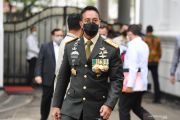 Panglima TNI Jenderal TNI Andika Perkasa berjalan usai dilantik menjadi Panglima TNI di area Istana Kepresidenan, Jakarta, Rabu (17/11/2021). Presiden Joko Widodo melantik Jenderal TNI Andika Perkasa menjadi Panglima TNI menggantikan Marsekal TNI Hadi Tjahjanto yang akan memasuki masa pensiun. ANTARA FOTO/Hafidz Mubarak A/foc.