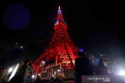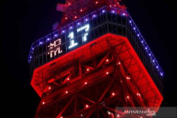 Menara Tokyo diterangi dengan warna Los Angeles Angels, setelah pemain Jepang Shohei Ohtani memenangkan penghargaan Most Valuable Player (MVP) untuk Liga Amerika Major League Baseball di Tokyo, Jepang, Jumat (19/11/2021). Shohei Ohtani merupakan pemain bisbol profesional dunia yang pertama kali mendapatkan penghargaan MVP (most valuable player) paling sempurna pertama kali di dunia dengan suara penuh para juri MVP. ANTARA FOTO/REUTERS/Issei Kato/rwa.