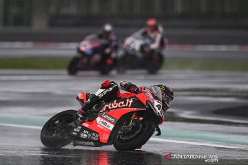 Pembalap Aruba.it Racing Ducati Scott Redding memacu motornya saat race 2 WorldSBK seri Indonesia 2021 di Pertamina Mandalika International Street Circuit, Lombok Tengah, Nusa Tenggara Barat (NTB), Minggu (21/11/2021). Dalam race 2 tersebut pembalap tim Kawasaki Racing WorldSBK Jonathan Rea keluar sebagai juara pertama diikuti pembalap tim Aruba.it Racing - Ducati Scott Redding kemudian pembalap tim BMW MOTORRAD Michael Van Der Mark. ANTARA FOTO/Sigid Kurniawan/pras.