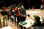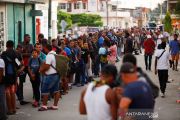 Para migran menunggu untuk ke naik bus setelah menerima tawaran dari pemerintah Meksiko untuk meninggalkan karavan menuju Amerika Serikat di Mapastepec, Meksiko, Rabu (24/11/2021). Imigran juga akan mendapatkan visa kemanusiaan untuk transit wilayah Meksiko.ANTARA FOTO/REUTERS/Jose Luis Gonzalez/rwa.