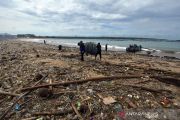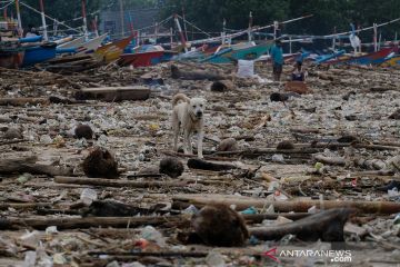 Seekor anjing melewati tumpukan sampah yang berserakan di Pantai Kedonganan, Badung, Bali, Selasa (7/12/2021). Cuaca ekstrem yang melanda Bali pada Senin (6/12/2021) tersebut menyebabkan sampah plastik, kayu, bambu dan kelapa terdampar di pesisir pantai akibat terbawa gelombang laut sehingga mencemari kawasan pariwisata itu. ANTARA FOTO/Nyoman Hendra Wibowo/aww.
