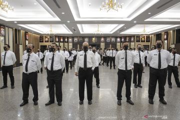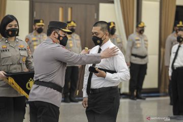 Sejumlah mantan pegawai KPK usai dilantik di Gedung Rupatama Mabes Polri, Jakarta, Kamis (9/12/2021). Kapolri Jenderal Polisi Listyo Sigit Prabowo resmi melantik 44 mantan pegawai KPK menjadi Aparatur Sipil Negara (ASN) Polri. ANTARA FOTO/Dhemas Reviyanto/wsj.