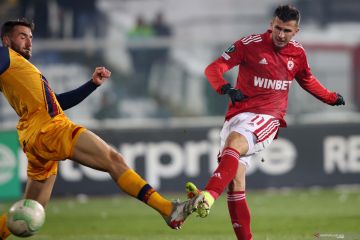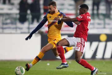 Pesepak bola CSKA Sofia Hamza Catakovic (kanan) menendang bola ke gawang AS Roma yang djaga penjaga gawang Daniel Fuzato dan berhasil mencetak gol dalam laga Group C Liga Europa Conference, di Stadion Vasil Levski National, Sofia, Bulgaria, Kamis (9/12/2021). AS Roma kalahkan CSKA Sofia 3-2 dan berhasil keluar sebagai juara group. ANTARA FOTO/Reuters- Stoyan Nenov/hp.